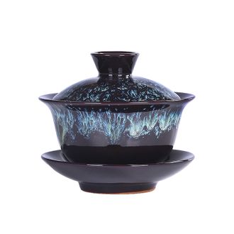 Классическая гайвань для заваривания чая, с блюдцем и крышкой.