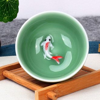 Пиала фарфоровая с объёмной рыбкой на дне.