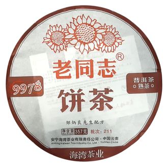 Шу Пуэр (блин) "Лао Тун Чжи 9978" (фаб. Хайвань) 2021 г. - 357 гр. Старый товарищ.