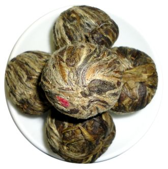 Зелёный связанный чай, с распускающимся цветком "Шуан Лун Си Чжу" ( Два дракона охраняющие жемчужину)